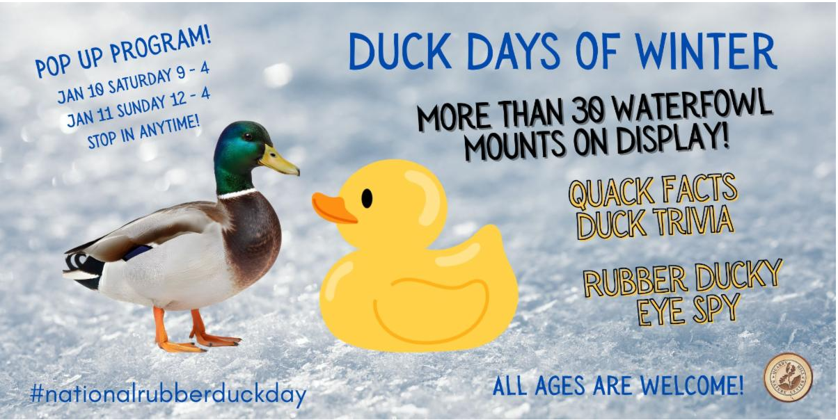 Waddle in to the Nature Center for the Duck Days of Winter, a spin-off of the upcoming National Rubber Duckie Day (who knew?). We are celebrating Quarry Hill style, THIS WEEKEND.